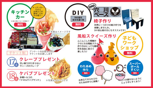 ※撮影した画像をブログ等に使用させて頂く場合がございますので予めご了承ください。※クレープ・ケバブのプレゼントやわたあめ作り
