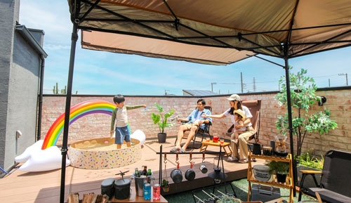 プライベートな空間でゆったりと、おうちキャンプを満喫♪お子様が喜ぶ水遊びグッズもご用意しています^^