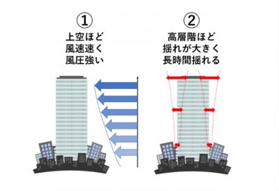 建物は高ければ高いほど地震の揺れの影響を受けやすくなります。ビルの1階よりも上層階の方が揺れるのをイメージすると分かりやすいかなと思います。風についても同じように高い位置の方が影響を受けやすくなりますので、1階しかない平屋はそういった面でもかなりのメリットがあるといえます。