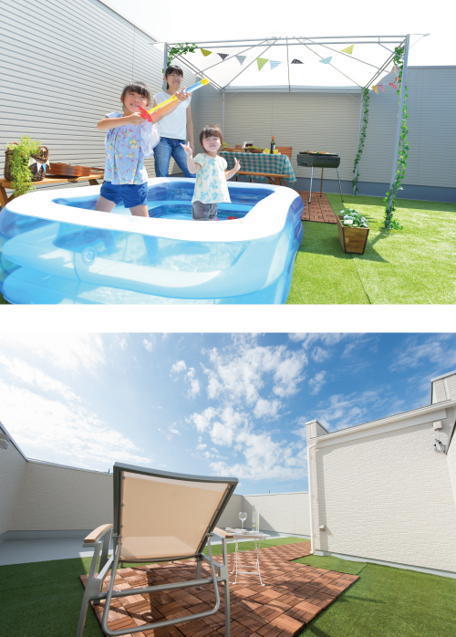 プールやテントを張って、お家に居ながらアウトドアリビング♪テレワークで疲れたときも、青空を見上げて、のびのび、スッキリと気分転換にもなります!