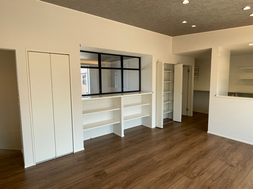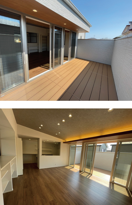 2階室内リビングとバルコニーの
