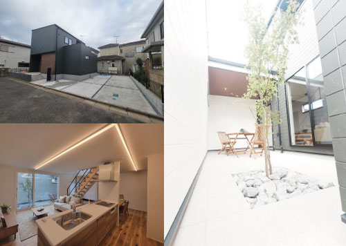 黒を基調とした外壁と、洗練された内装が目を引くモデルハウス。駐車場4台分の広さとテラス付きのデザインは、休日の楽しみが広がる夢の空間です!