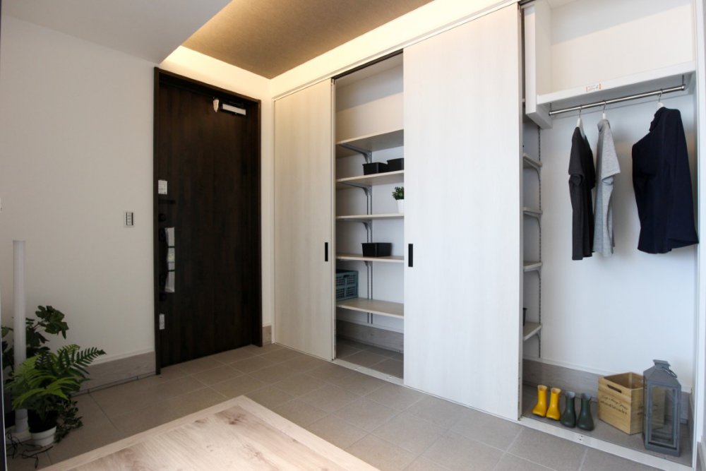 ・帰宅後すぐにコートをしまえる収納を玄関近くに置く。