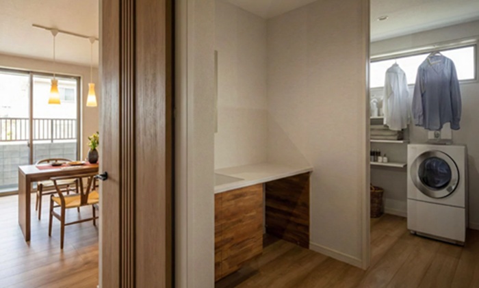 家事がラクな家は、この移動距離が短く設計されています。料理をしながら洗濯機の様子が見える、干す場所がすぐ近くにある、使う場所の近くに収納がある。こうした配置によって、一つひとつの動作がつながり、無駄な往復が減ります。