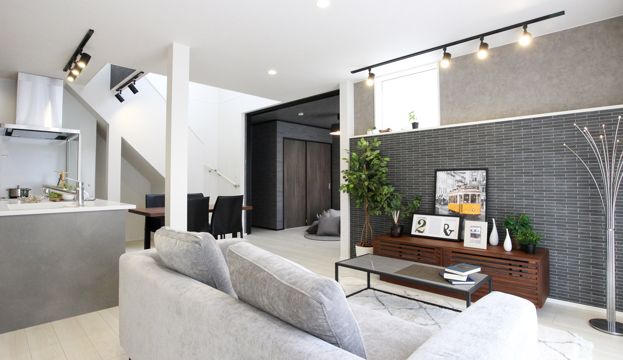 吹き抜けがある開放的なリビングダイニングには日中たっぷりの光が室内を照らします。