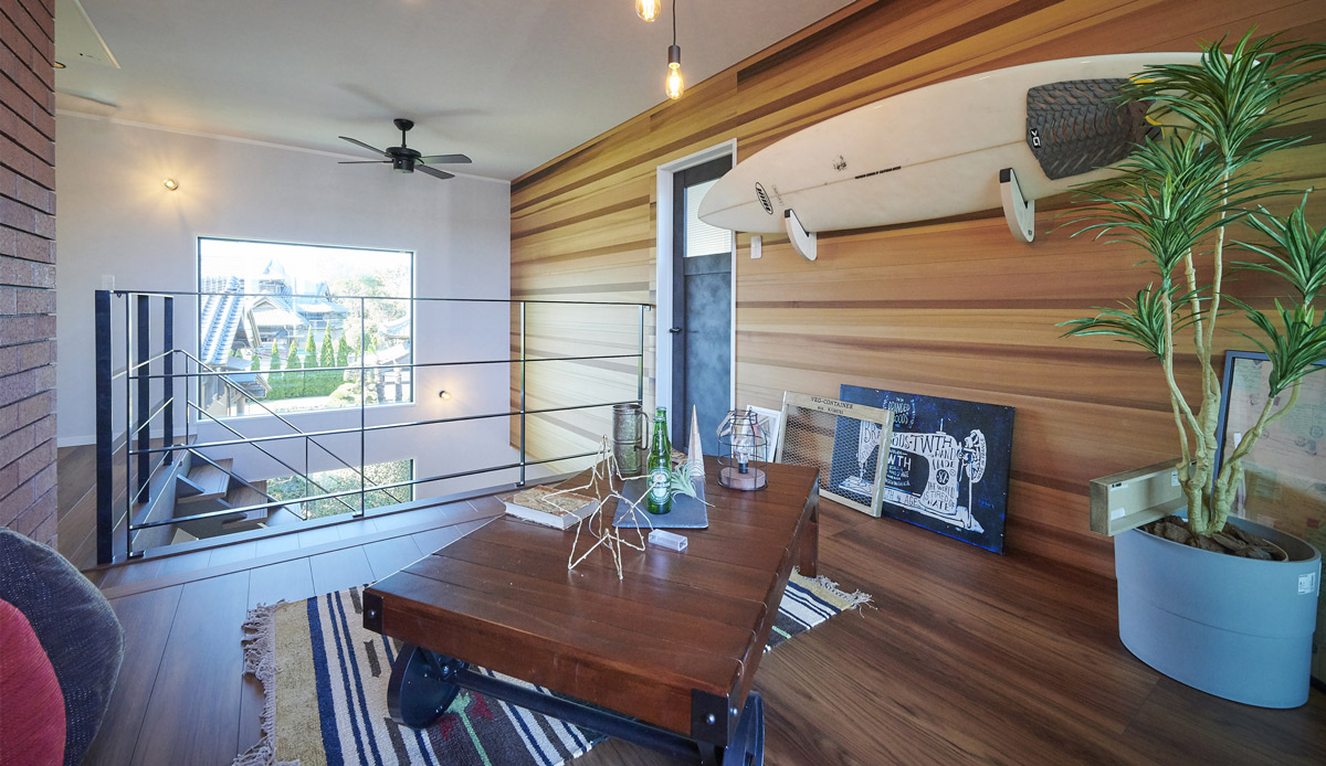 2Fバルコニーに繋がるセカンドリビングは各部屋の丁度真ん中に位置しており、家族が集う2つ目のリビングとしても人気。