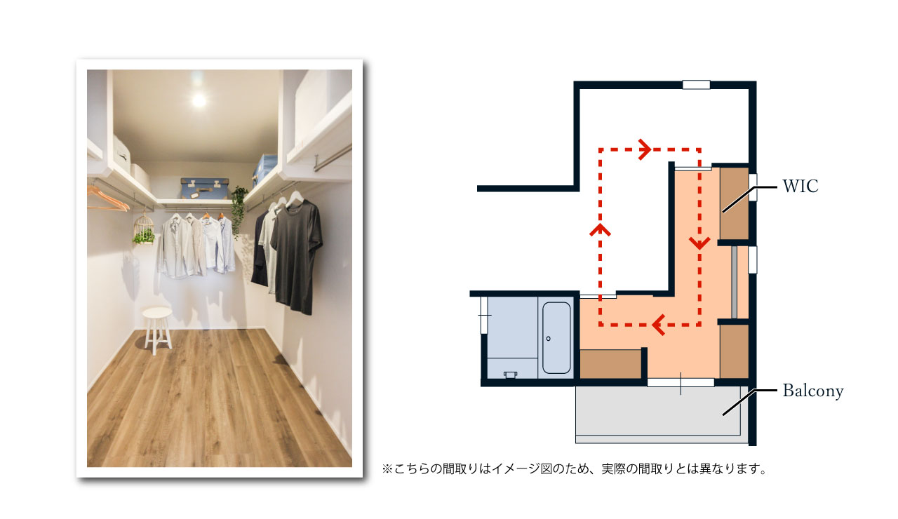 回遊式のスマート動線で家事もはかどる大容量ウォークインクロゼットは家族の衣服やカバンもたっぷりと収納することができます。