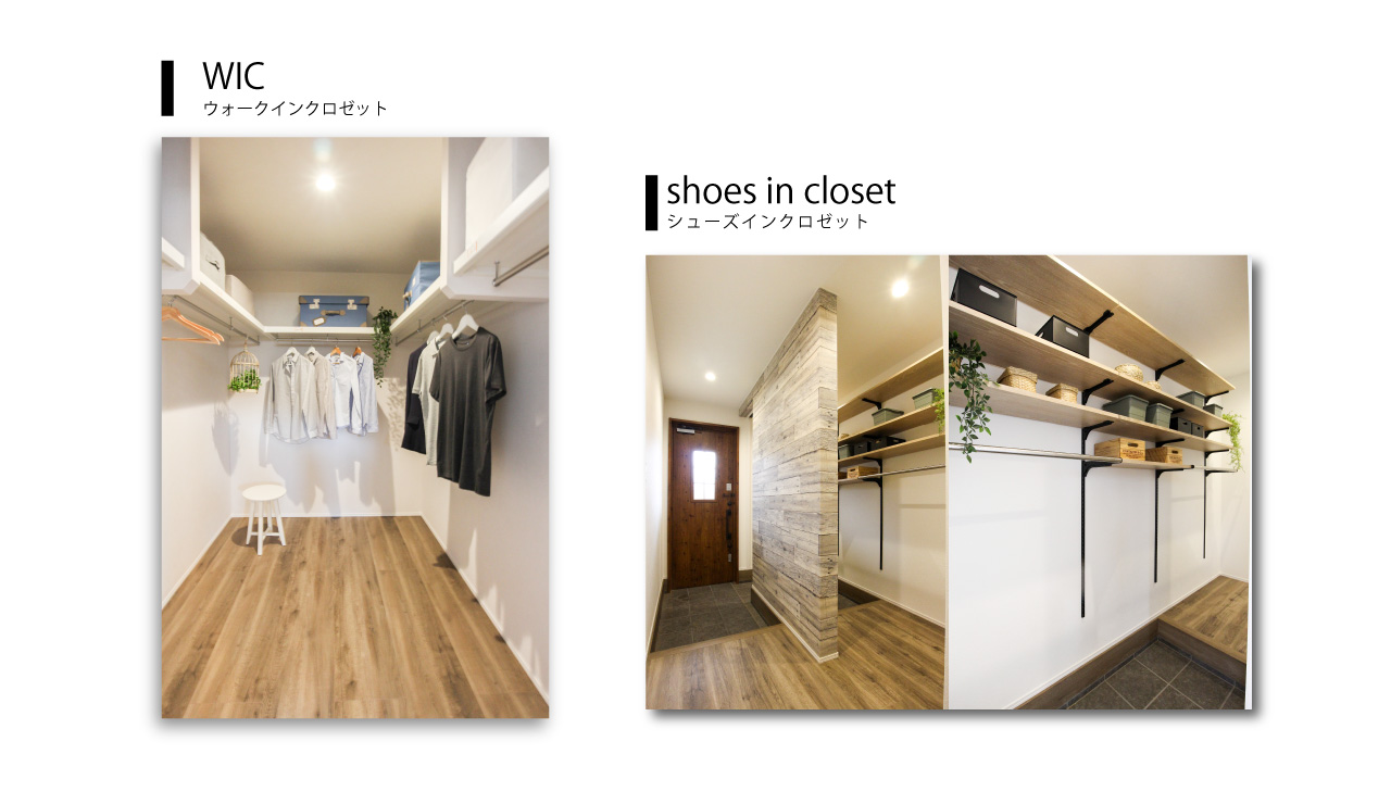 主寝室には2つの大容量ウォークインクロゼットがあり、ご夫婦それぞれの衣類を分けて収納することができます。