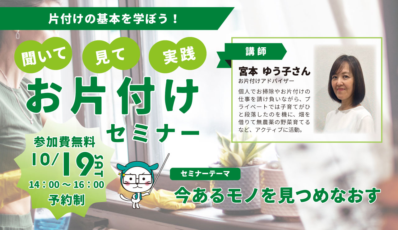 八千代市村上ハウジングパークで10月は「お片付け編」、12月は「掃除編」と2回のセミナーを開催します!