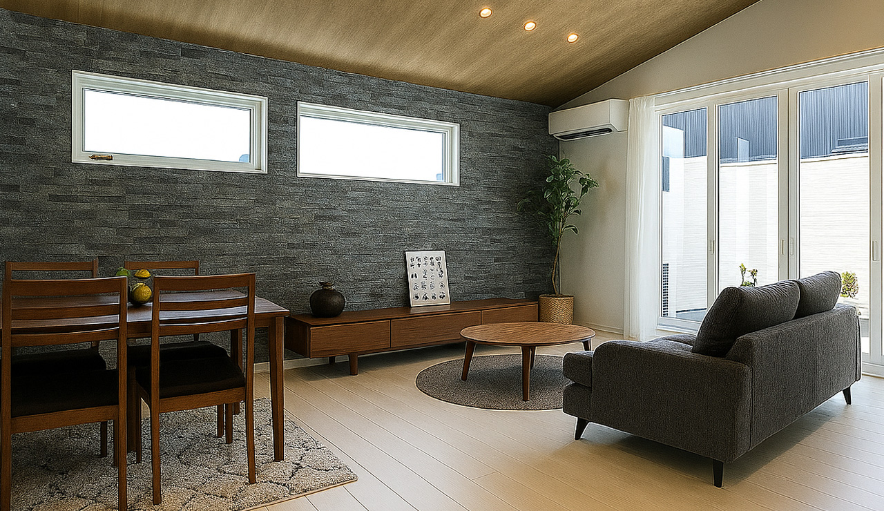 プライバシーも確保できる2階リビングは、明るさと開放感が魅力。窓の向こうに広かる空をひとりじめ。