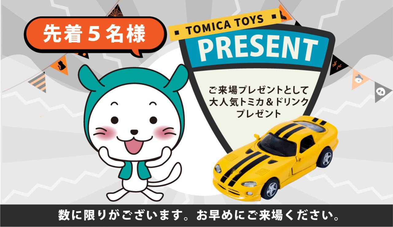 ご来場プレゼント 大人気「トミカ」を先着5名様に!