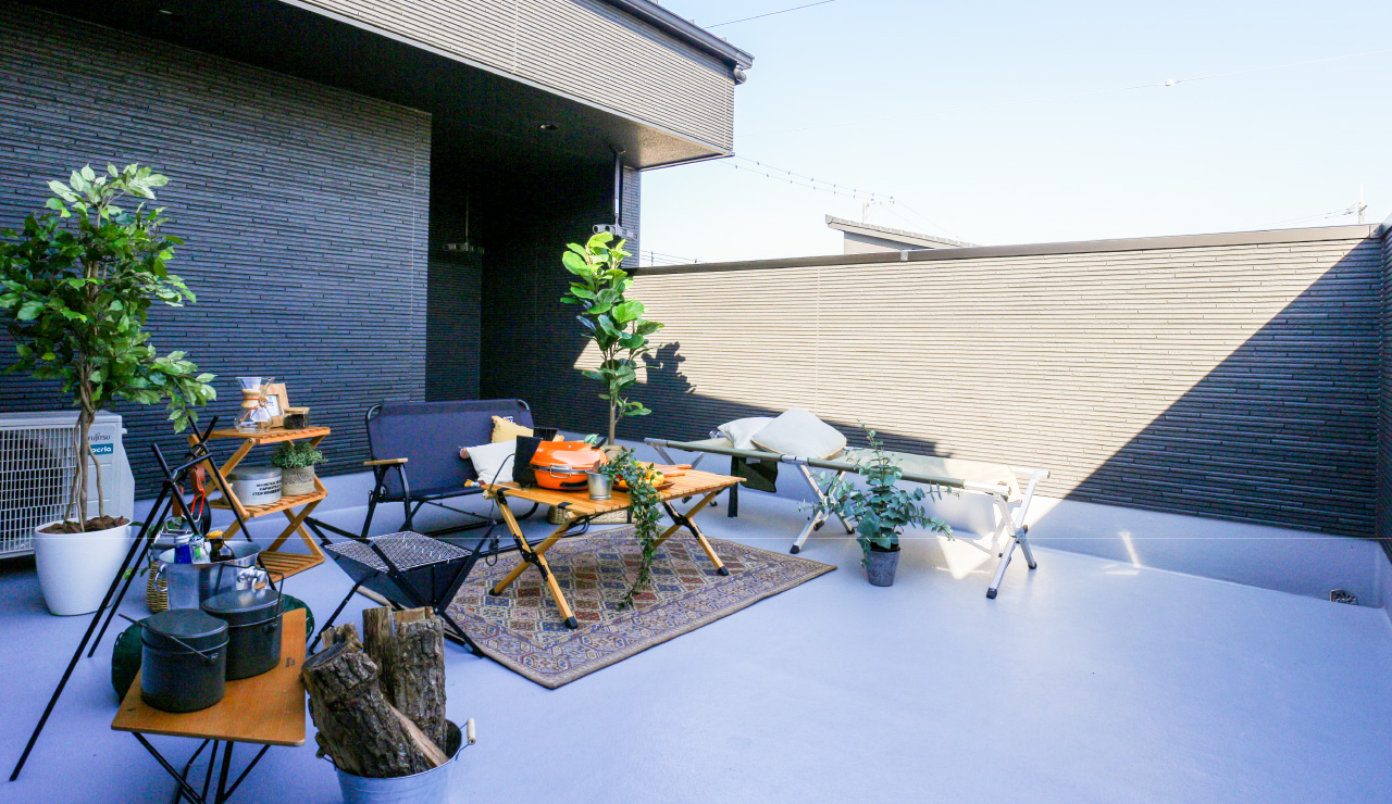 空の下でくつろぐもうひとつのリビングにもなる二階バルコニーは、家族や友人と過ごすのにちょうどいい広さ。