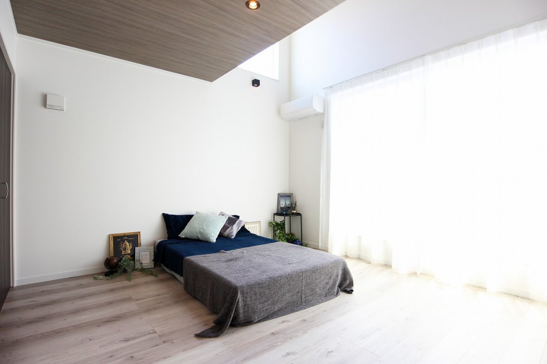 寝室天井には吹き抜けがあり、十分に光を取り込むことが出来ます。