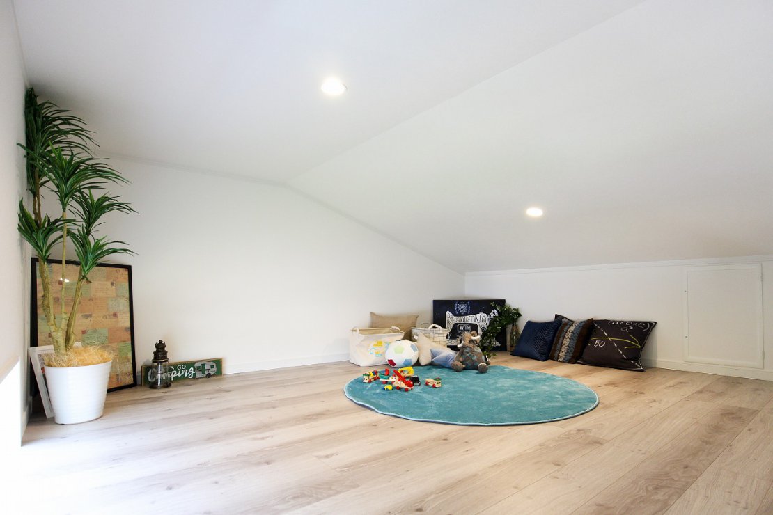 斜め天井になったロフトは、秘密基地のようなワクワクする空間。