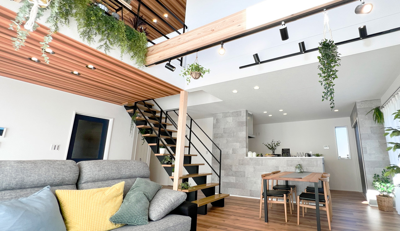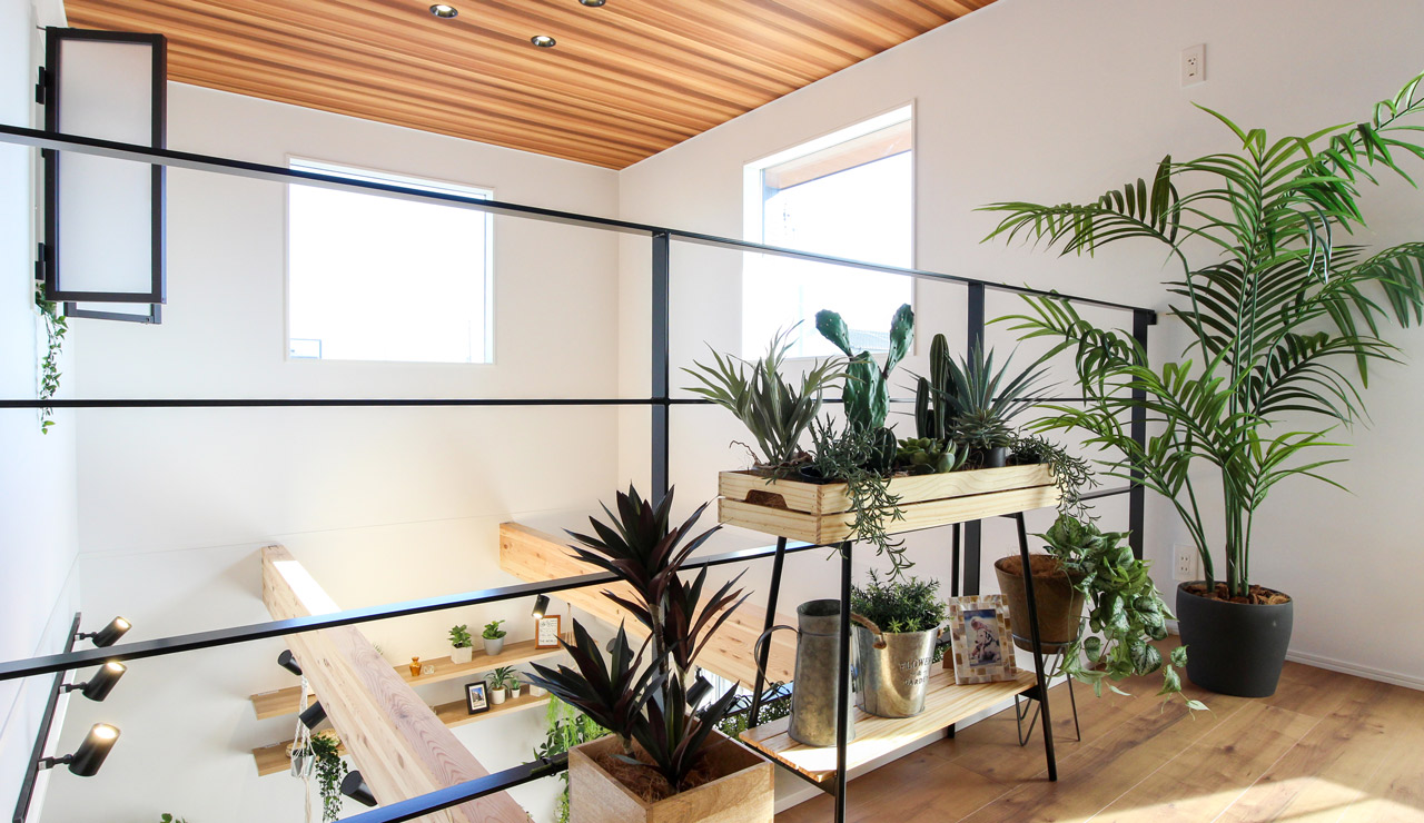 吹抜けからはリビングを見下ろすことができ、1階と2階でのコミュニケーションも楽しい遊び心のある間取りです。