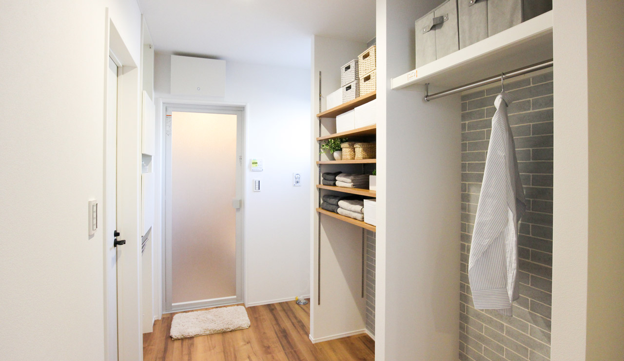 キッチンから直接出入りが出来るランドリールームは、炊事や洗濯を効率よくこなすことが出来る快適な家事動線になっています。