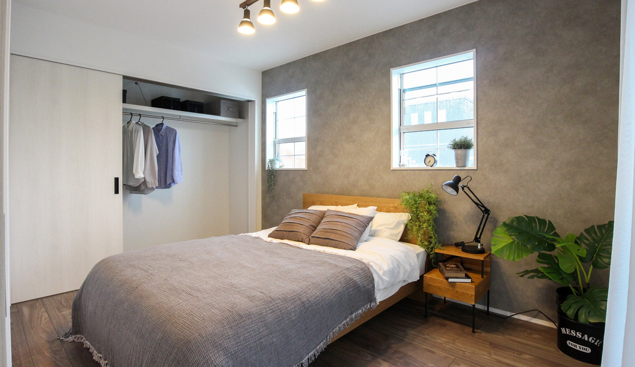 主寝室には大きな収納があり、ご夫婦の衣類をたっぷりと収納できます。
