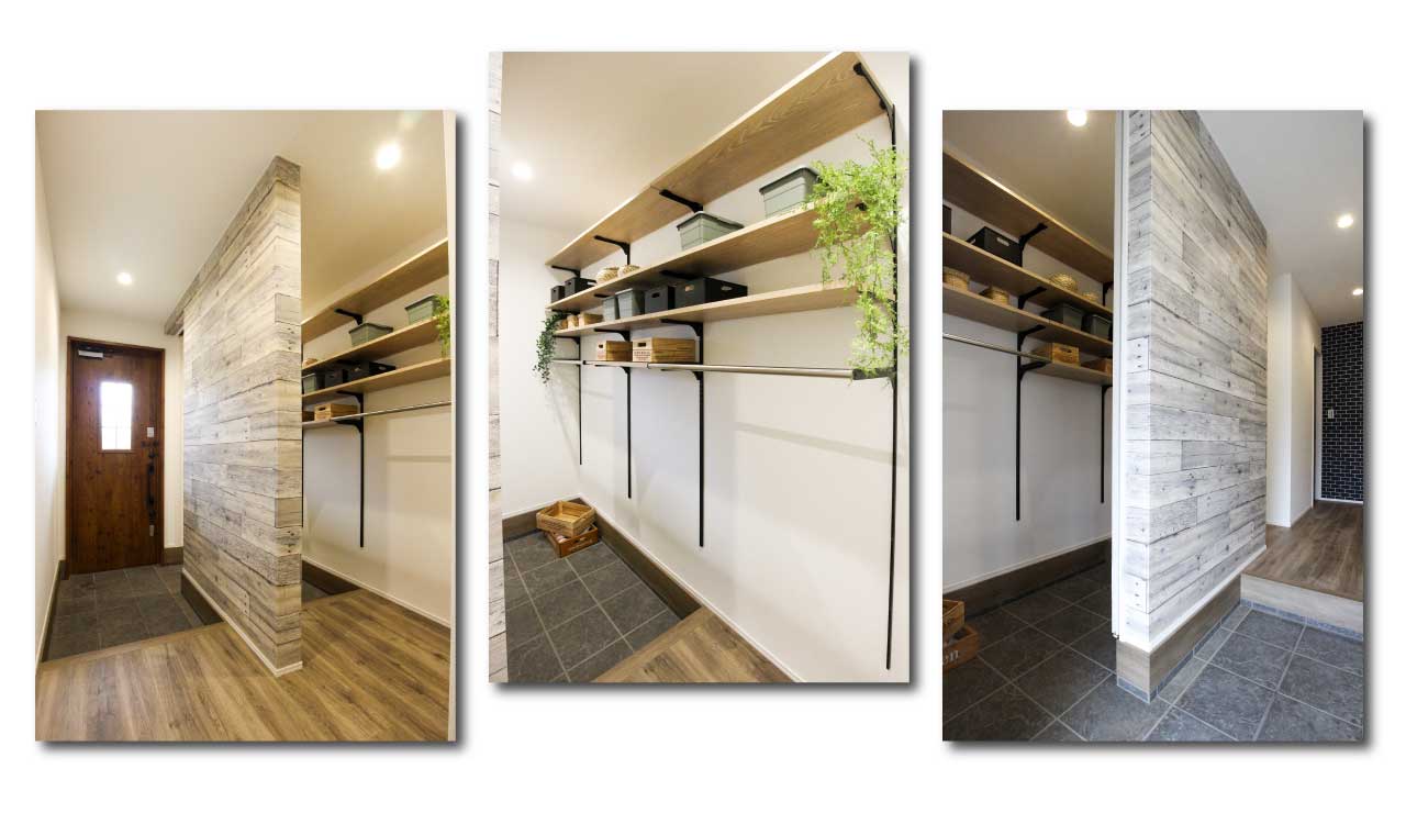 玄関には区切られた空間があり、アウトドア用品や大きなベビーカーなどもラクラク収納できます。