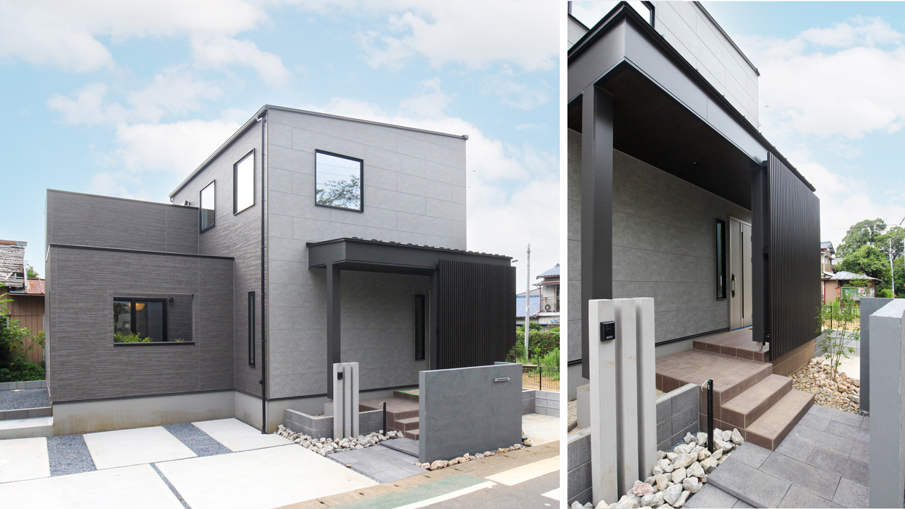 エントランスまでのアプローチにはブラックの格子がデザインされており、扉を開けた時も前の通りからの視線も気になりません。