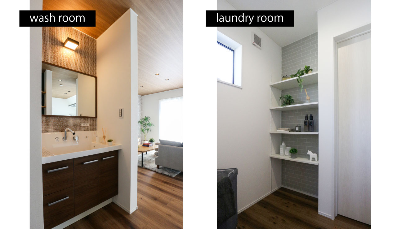 洗面台をランドリー&バスルームから独立させているので、家族が入浴中でも気を遣わずに洗面台を利用することができます。