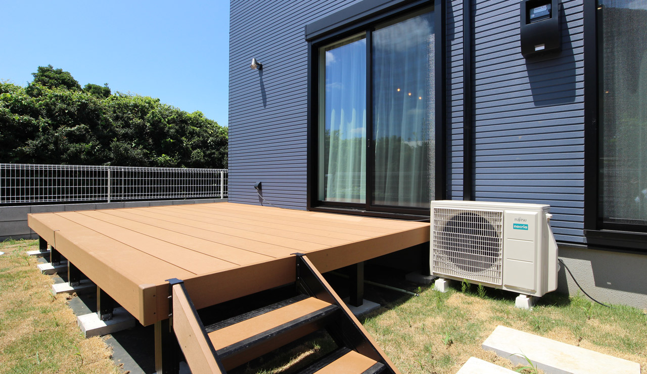 ダイニングから直接アクセスできる広々としたウッドデッキでは、ラグやテーブルセットを用意してピクニックを楽しんだり家族でBBQをするなど、気軽にアウトドアを楽しむことができます。