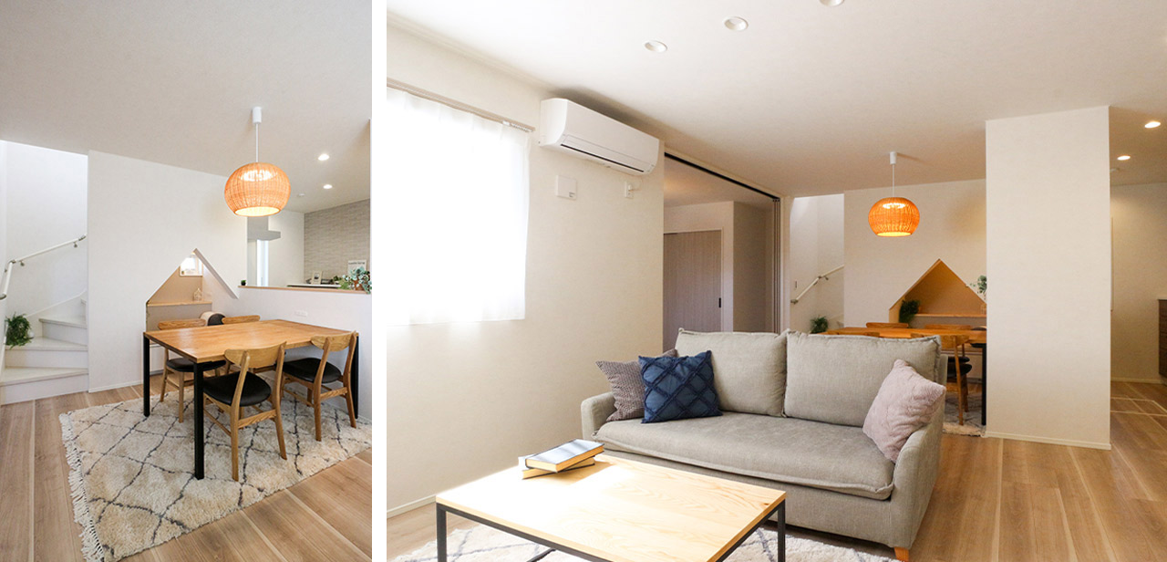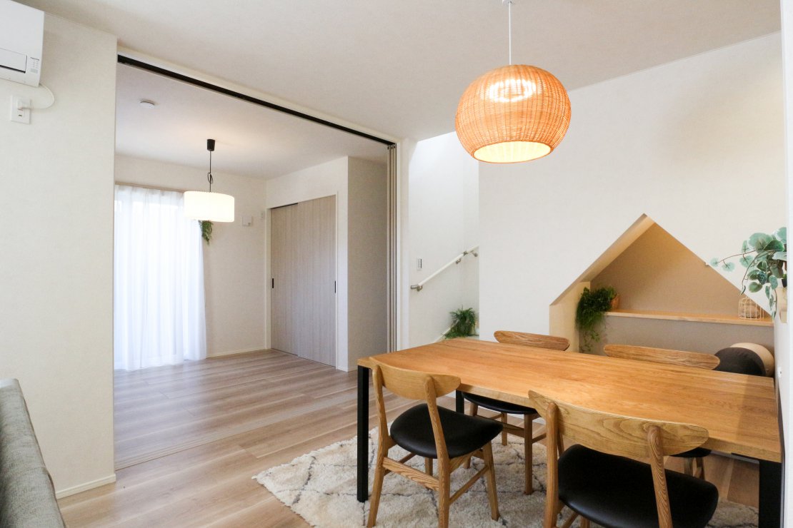 ダイニングの隣にはスライドドアで区切ることのできる洋室があり、普段はお子様のお昼寝や洗濯物を畳むスペースとして、親戚の宿泊などがある場合にはゲストルームとして活躍します。