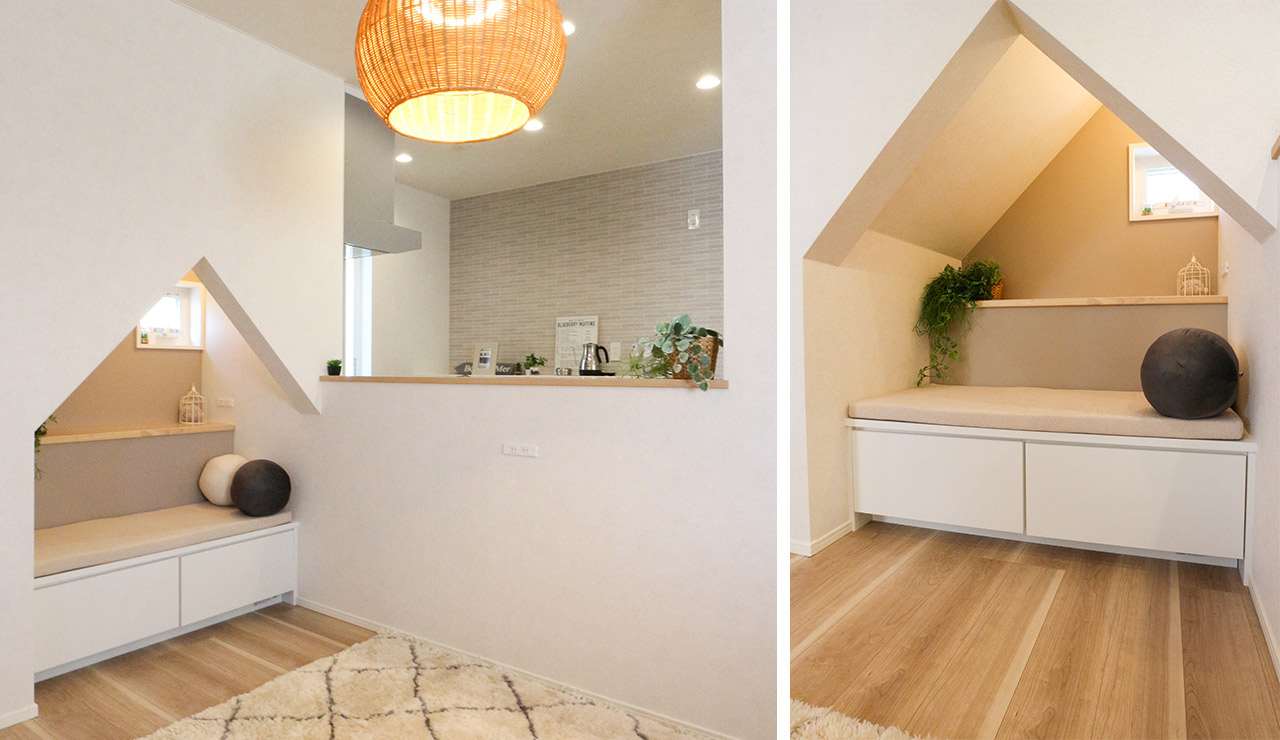 ヌックは隠れ家のような籠れる場所で読書やお昼寝に最適です。