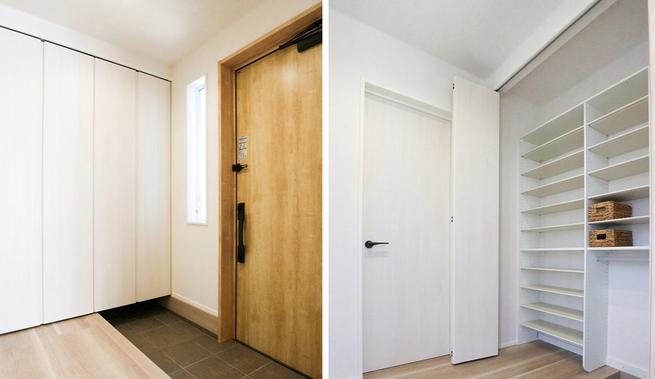 大容量シューズインクロークと2way動線が魅力のエントランス
