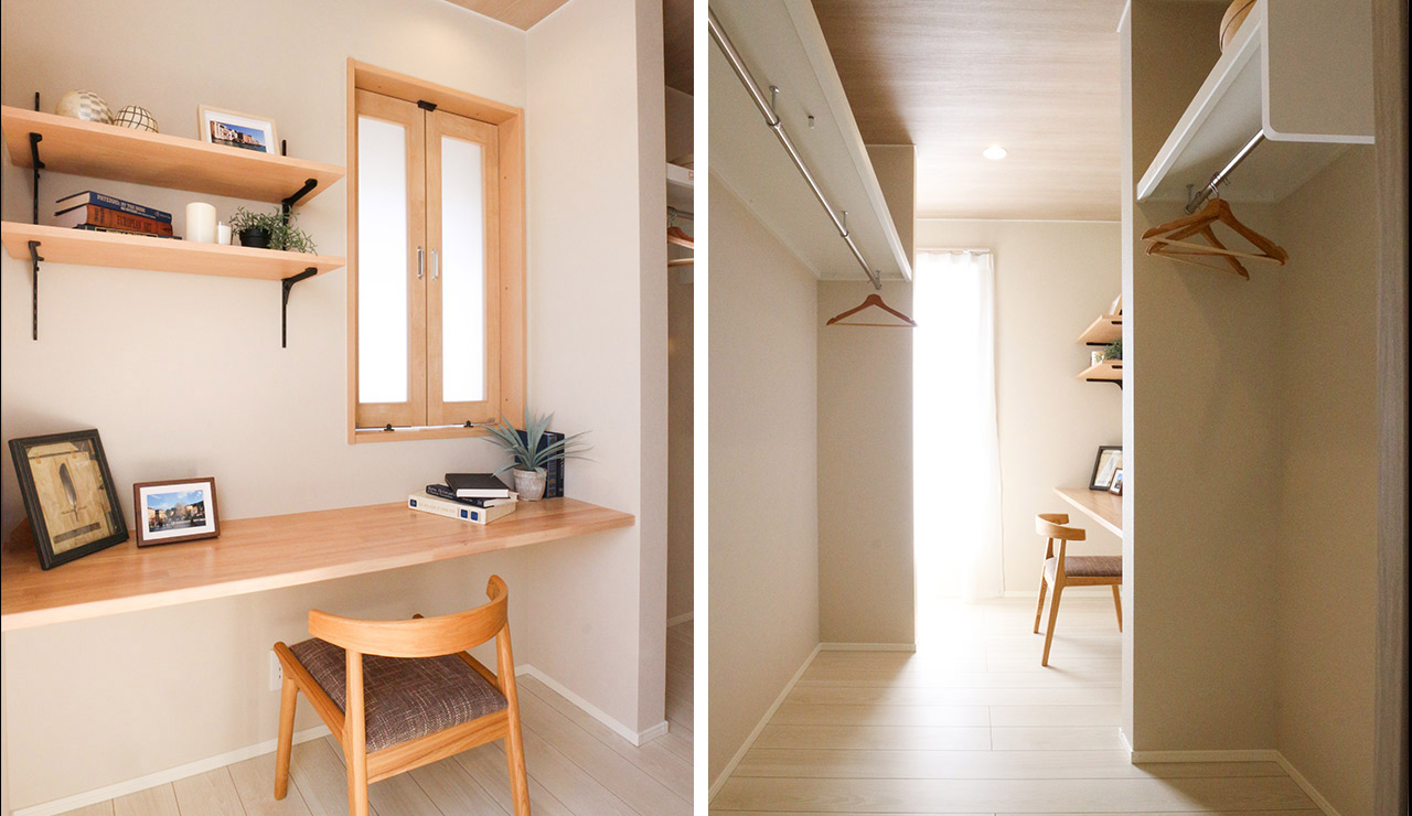 書斎スペースはリモートワークで使用したり、洗濯物をたたんだり、アイロンがけのスペースとしてもご活用いただけます。 -