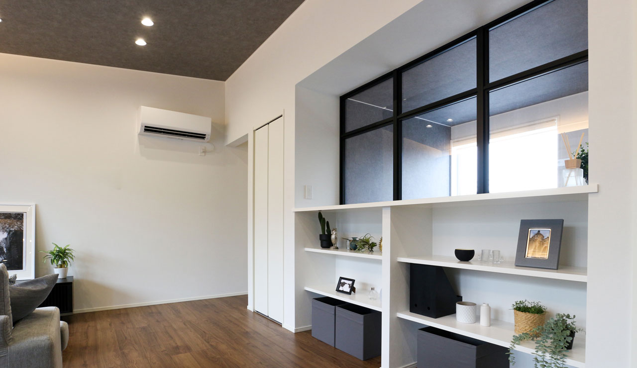 サイドには隠せる収納(クロゼット)があり、日用品などを収納できるほか、窓の下の見せる収納にはお気に入りの雑貨やお子様の絵本を収納するなど便利な設計です。