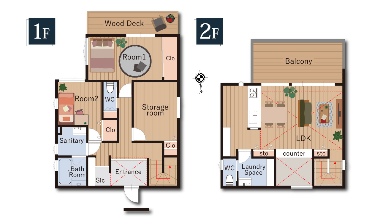 2階バルコニーはリビングダイニングにつながっており、セカンドリビングとしても人気です。