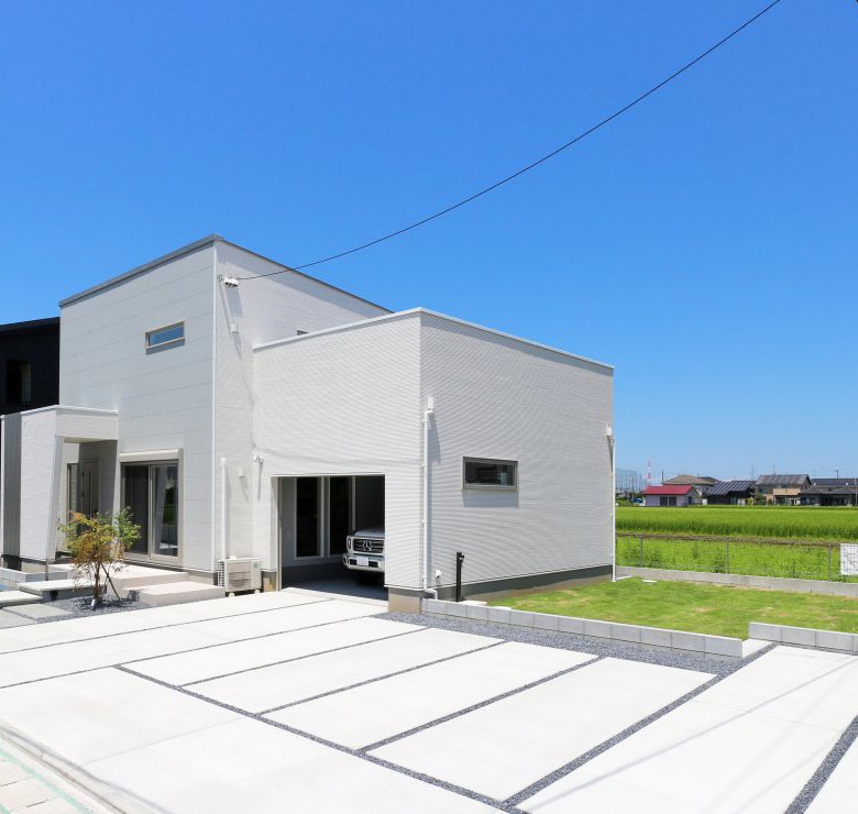 車はガレージに1台と外に最大で4台を駐車することが可能。複数台所有されるご家庭にはもちろんのこと、来客時にも安心です。