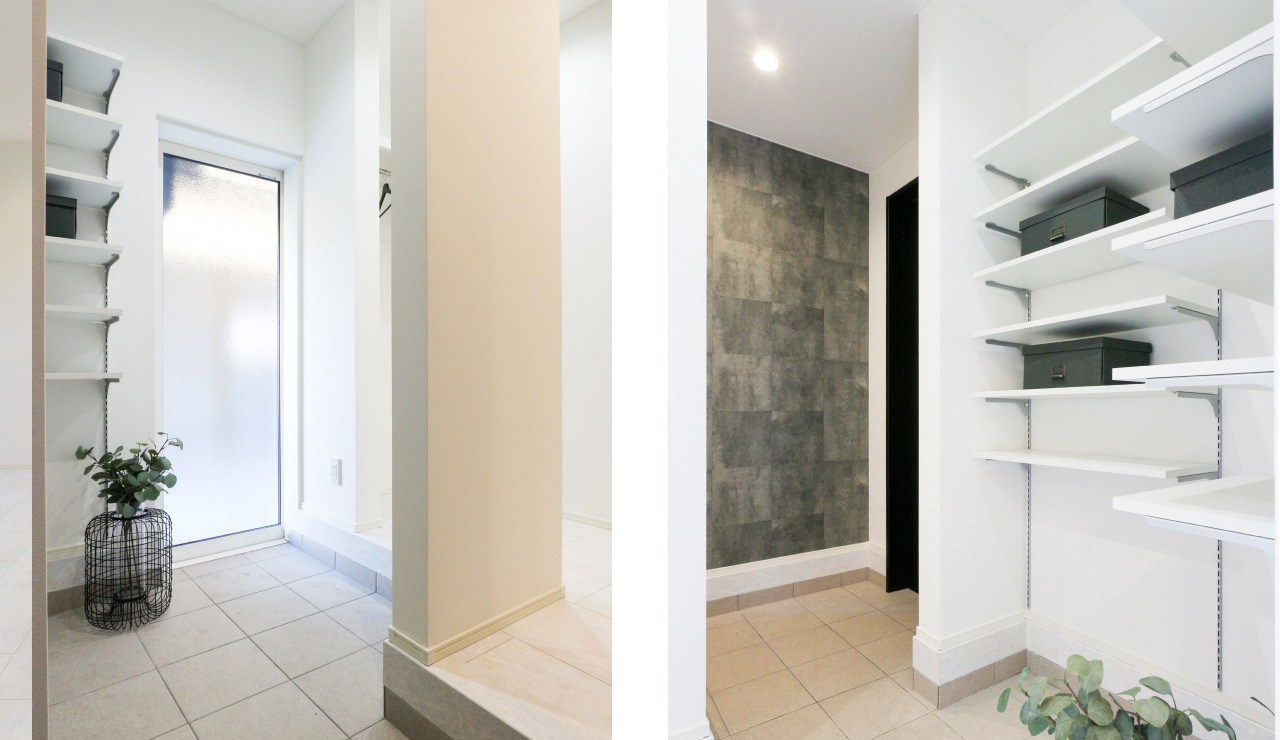 ガレージから、エントランスとシューズクローゼットに直結しているため、日々の動線もスムーズ。