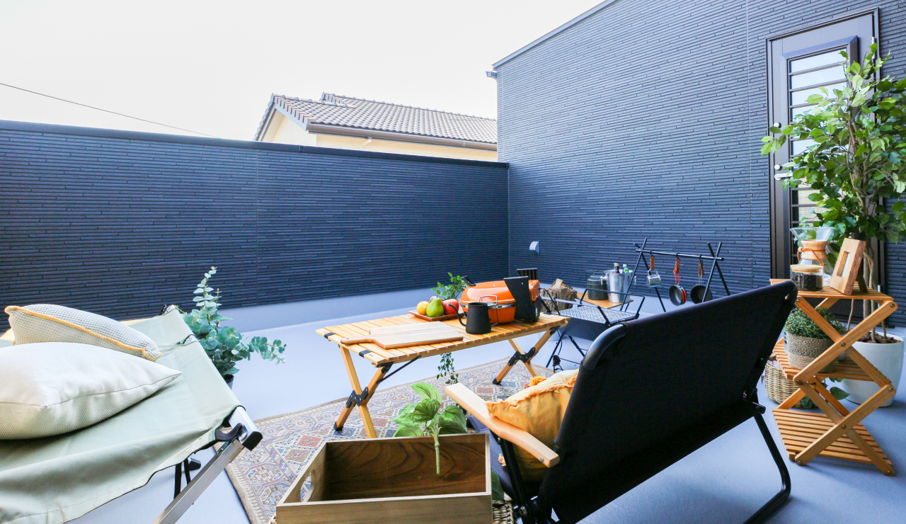 コーヒーを片手に読書をしたり、家族でランチを楽しんだりと、アウトドアリビングとして活用できます。 -