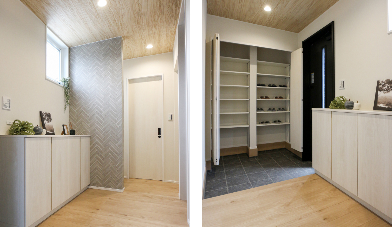 アクセントクロスが奥行きを生み、おしゃれな第一印象に。