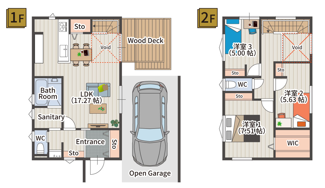 オープンガレージハウス|吹き抜け×収納×ウッドデッキ!愛車と暮らす家