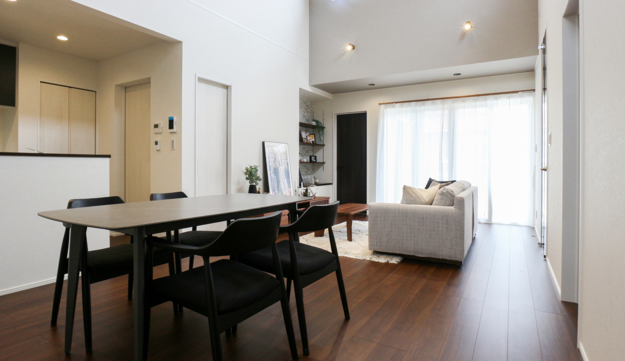 メリハリのあるデザインがLDKに洗練された雰囲気を生み、上質で落ち着きのある住まいを演出します。 -