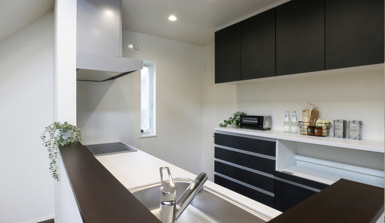 家事動線の良いモダンキッチンお料理中もご家族とのコミュニケーションが取りやすいのが対面式キッチン。