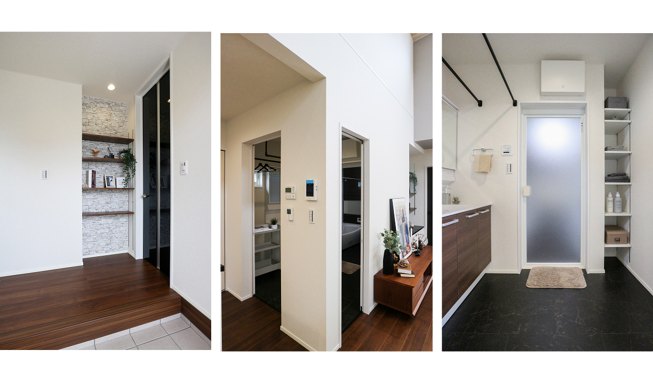 リビングから水まわりへ直行できる無駄のない間取りで、毎日の家事時間をしっかり短縮。