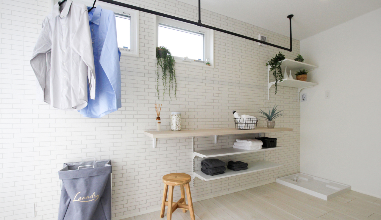 「洗う・干す・畳む」をスムーズに完結できる、効率的で美しい家事動線です。 -