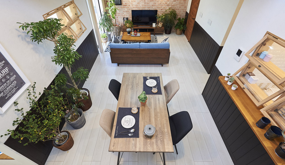 オシャレな窓やアクセントクロスをあしらう事で、ヴィンテージ風家具の似合う空間へ。