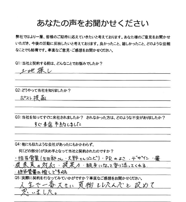 エステージでは、より良い家づくりを実現するため、お客様アンケートにご協力いただいております。注文住宅やリフォームに関するご意見をもとに、サービス改善に努めてまいります。ご協力ありがとうございました。