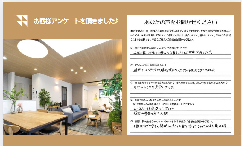 お客様からいただいたご意見は、今後のサービスや家づくりにしっかりと活かしてまいります。