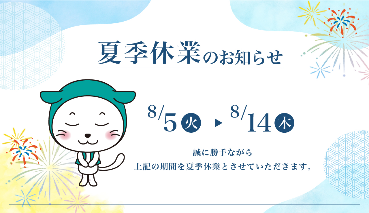 誠に勝手ながら、弊社夏季休業につきまして、下記の通りお知らせ申し上げます。