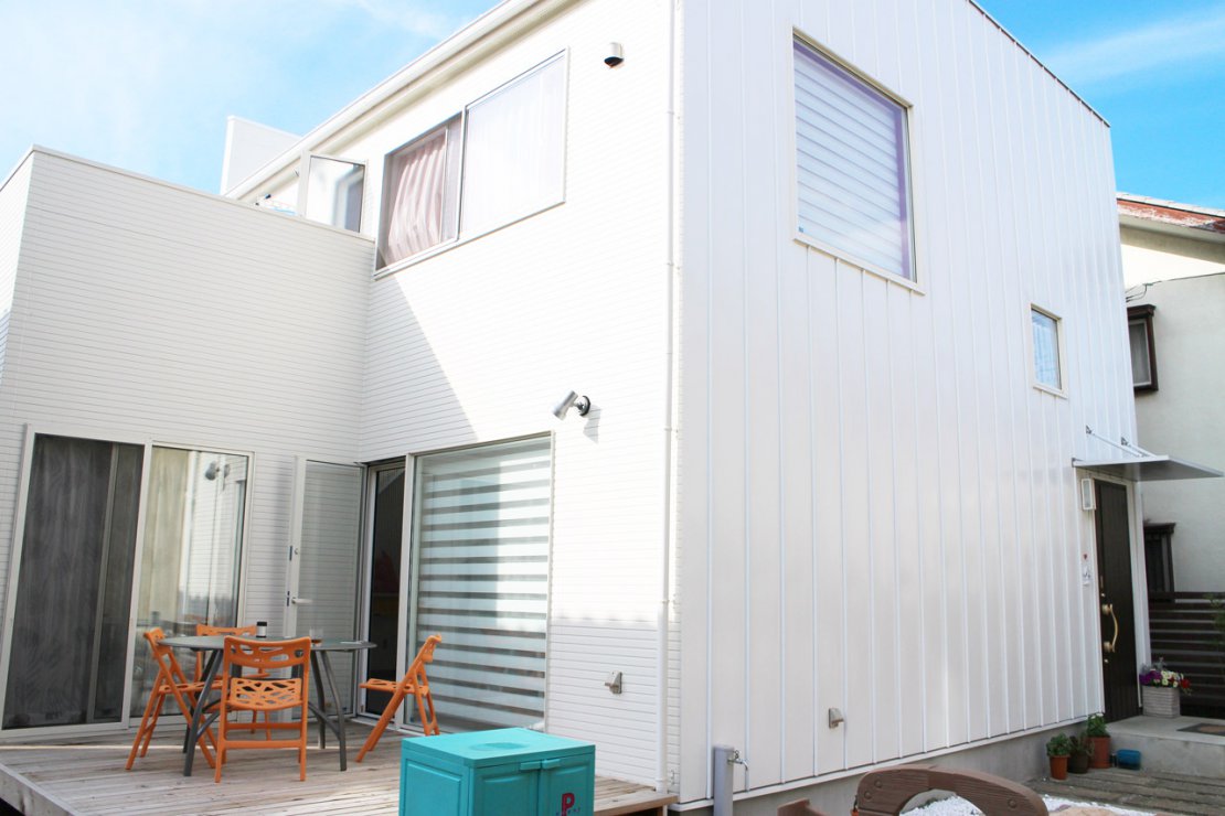 部屋の延長のようなウッドデッキでランチやおやつを楽しみ大活躍! 風通りがよく心地よい空間でみんなのコミュニケーションが深まって、家族が明るく楽しく過ごしてます。