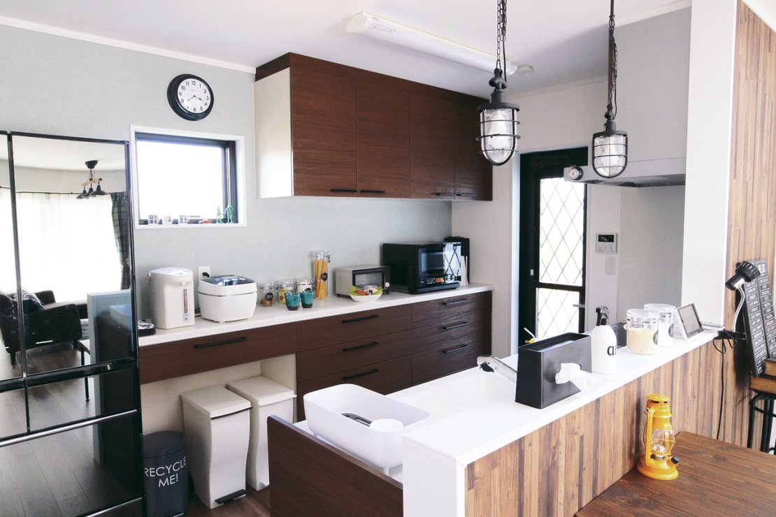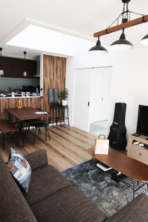 シンプルだけどアクセントになるようなアイテムを選んで、まるでカフェのようなマイホームを実現したY様邸。統一感のある木目調の空間に、男前家具がよく似合っています。