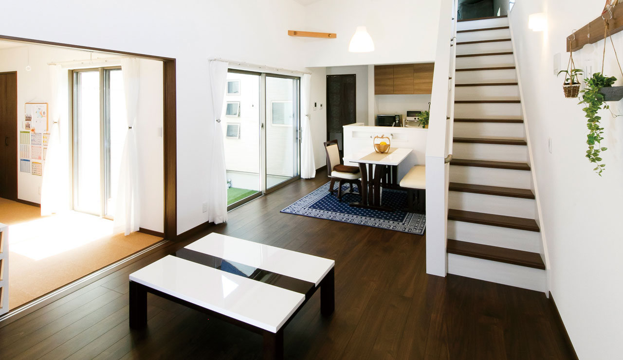 コミュニケーションと家族の生活動線を優先した間取りを採用しています。