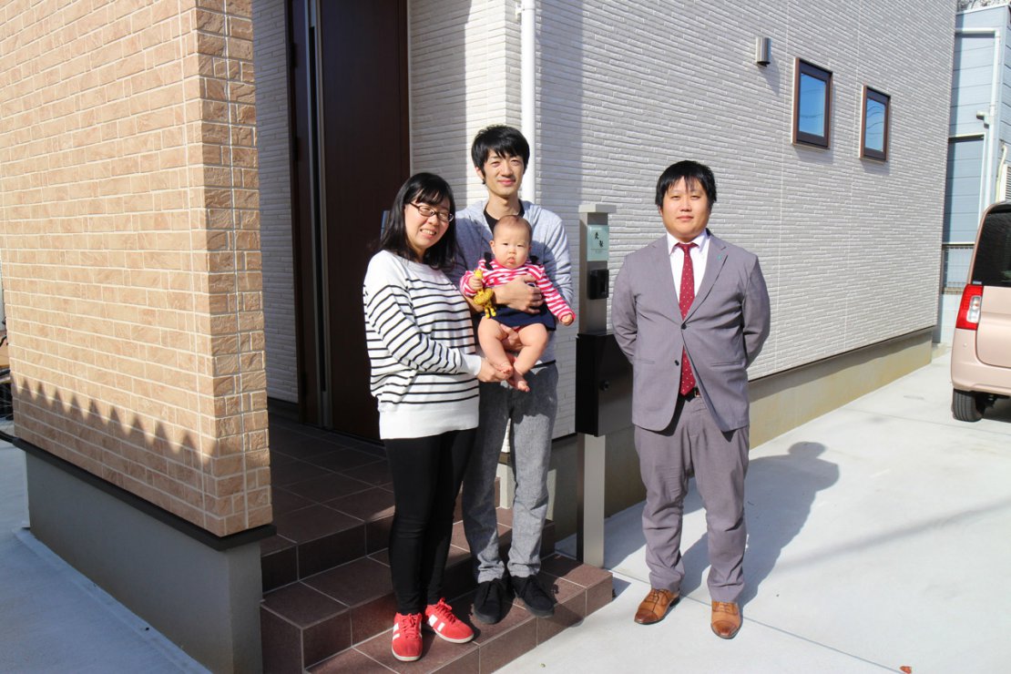 ご主人様:車通勤なので車を最低でも2台、できれば来客用にもう1台停められる広さの土地を希望していました。予算をお伝えしていたので、本当に探すのが大変だったと思います。ここは広さも予算もクリアしていて、インターも近いですし、周りに日光を遮る高さの建物もないので日当たりも良くて、本当にいい所を見つけていただきました。
