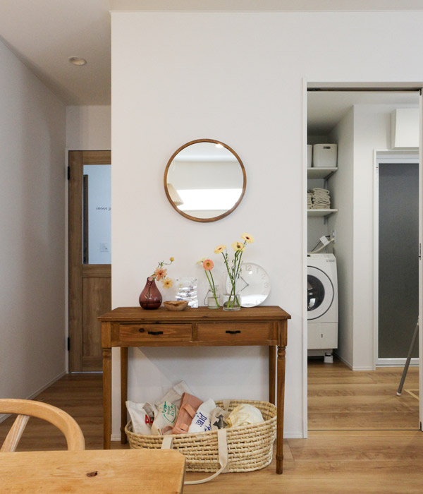 前に住んでいたアパートは新築で最新の間取りだったのか、ニッチがあったり、洗濯機の上に干す場所があるなど、生活動線がよく考えられていた家だったので、そういったいい所はこの家にも取り入れていきました。
